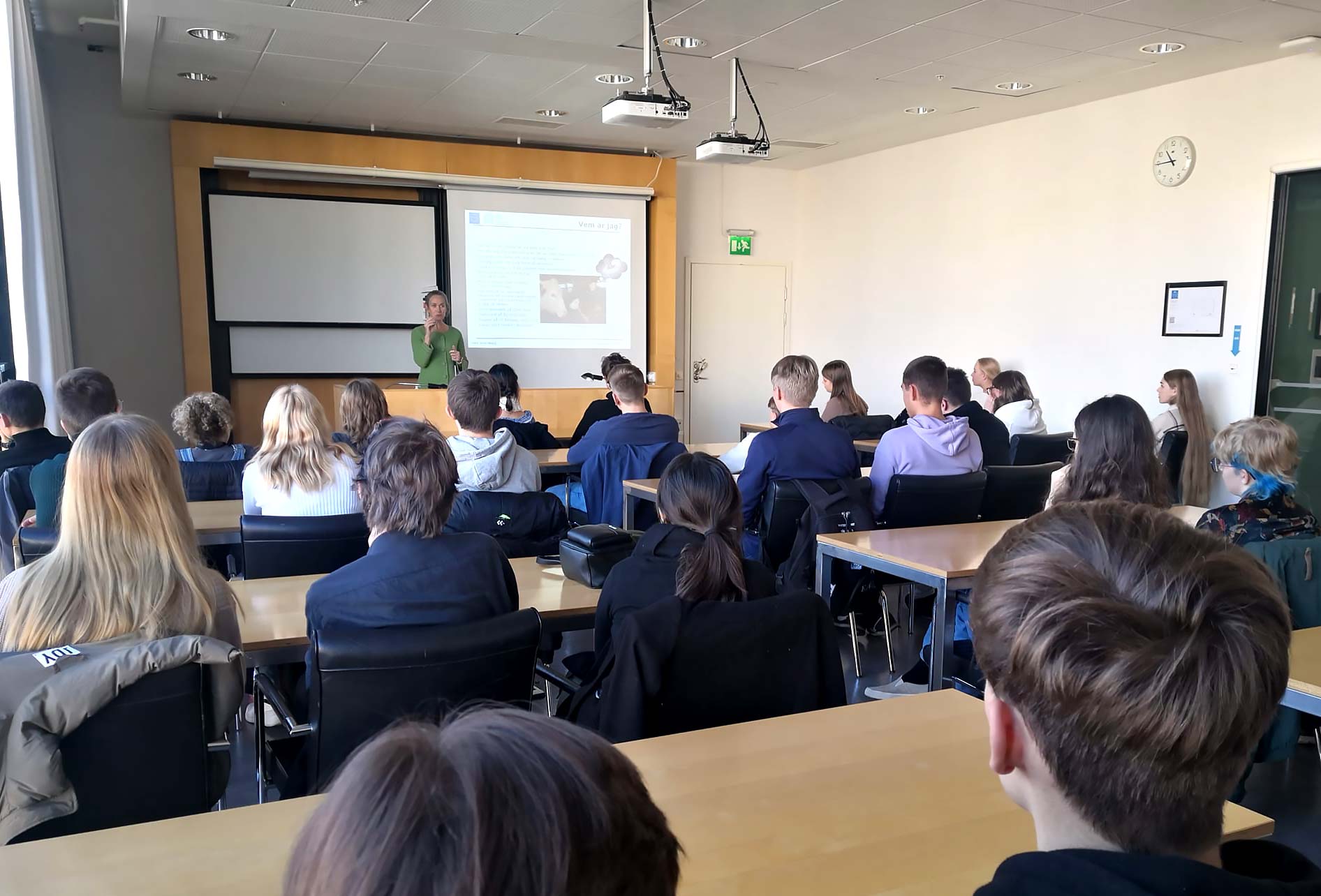 FÖ22 inledde Stockholmsdagen med ett besök på SVT, där fick vi träffade Katia Elliott som är programledare på Aktuellt. Efter en rundtur så berättade Katia om hur hon arbetar innan och under sändning. Hon betonade hur viktigt det är för för SVT med saklighet och objektivet och att det är viktigt att följa nyheterna via en säker källa.