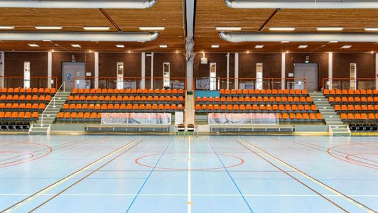 där det även finns simhall med 25-metersbassäng och lokal för styrketräning. Det tar cirka 15 minuter att gå från stadscampus till idrottshallen.